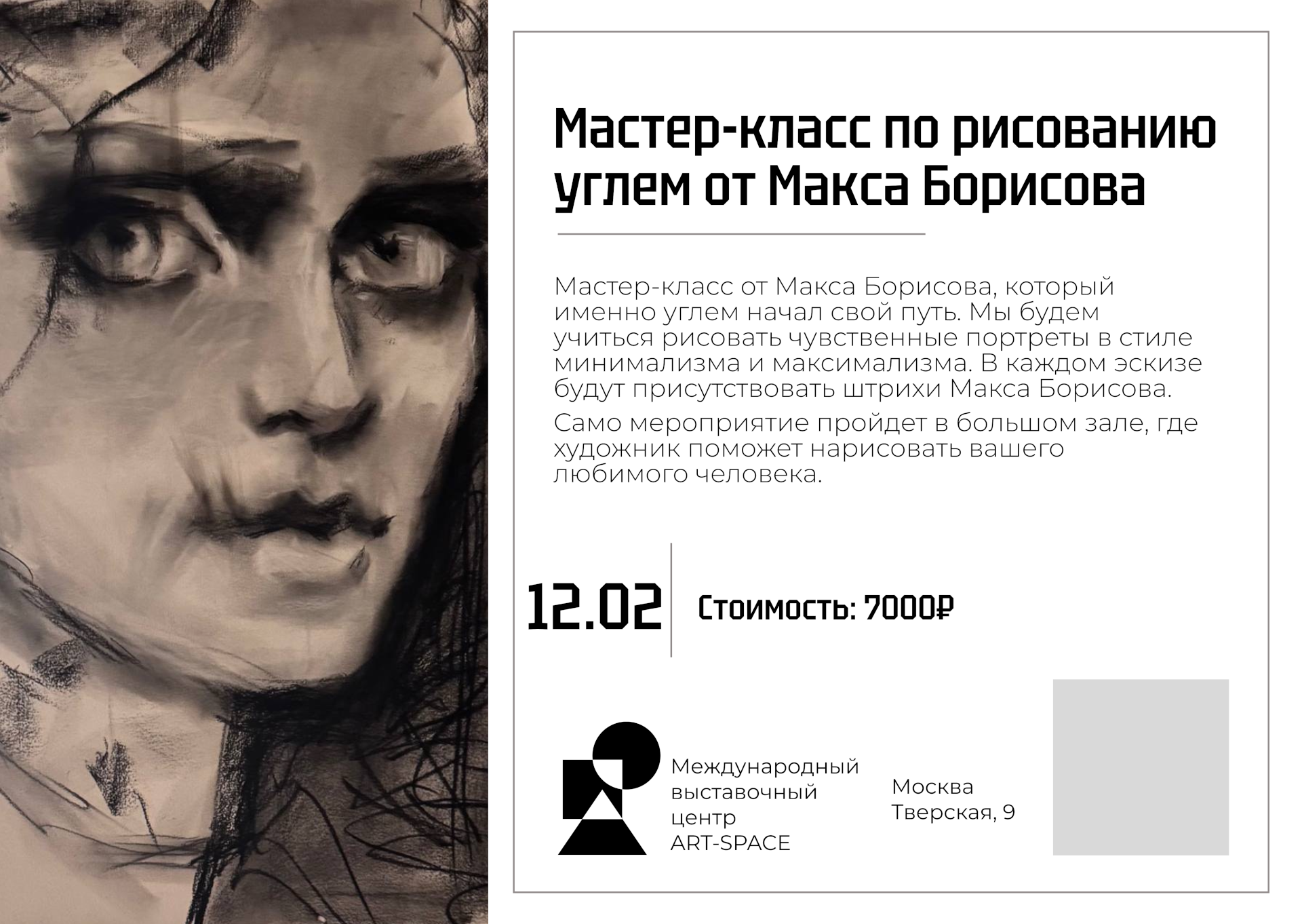 Билет действителен для единоразового посещения мастер-класса по рисованию углем от Макса Борисова. Стоимость 7000р с человека. Билет на уникальный мастер-класс, где вы сможете погрузиться в технику рисования углем, с которой начинал сам Макс Борисов. Этот талантливый художник поможет вам создать чувственные портреты, объединяющие элементы минимализма и максимализма, даруя возможность выразить свои чувства через искусство. Мастер-класс…